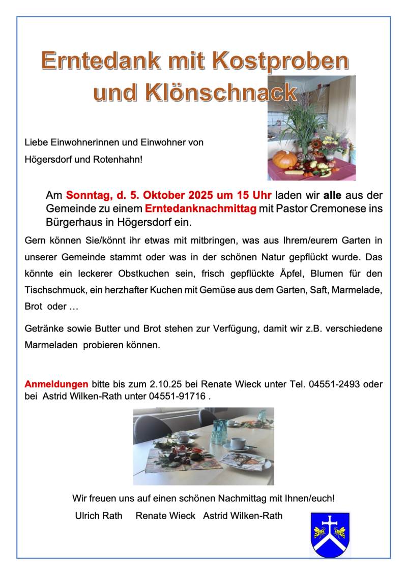 Einladung zum Erntedankfest